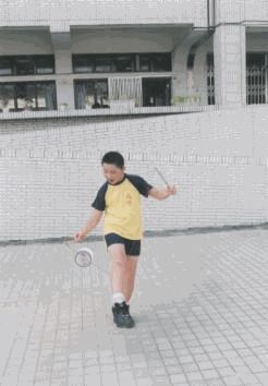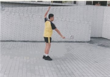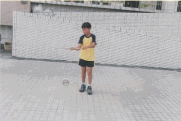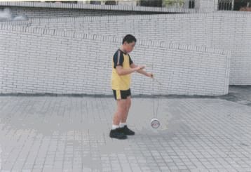 動作要領: 1.成開線,右腳(或是大腿)置於鈴線之間。 2.左右兩棍端微微相對。 3.右手將鈴由下往上成圓形加速,鈴一直圍繞著腳運轉, 左右兩腳可互換來做。 4.熟練後,可同時加速及調鈴。 |