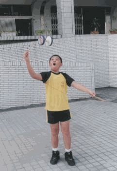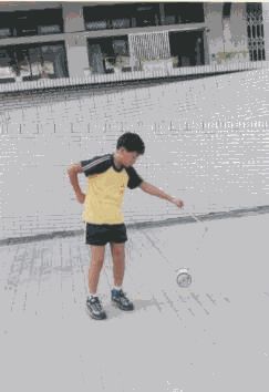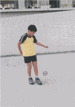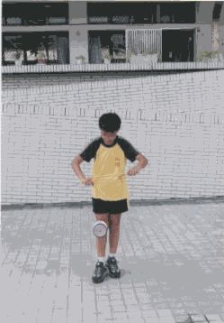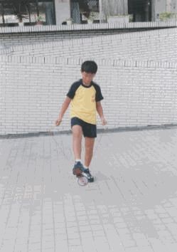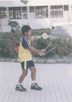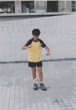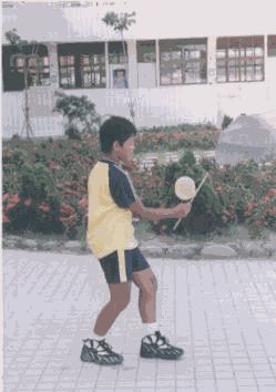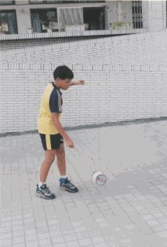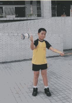 動作要領: 1.身體左轉成開線。 2.右線繞過脖子,使線繃緊。 3.兩手交替上挑,即可使鈴在左右鈴線上跳來跳去。 4.接鈴時,以棍端對準鈴軸,用線承接。 |
