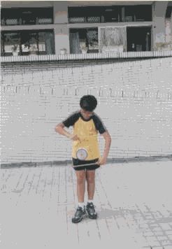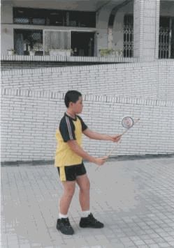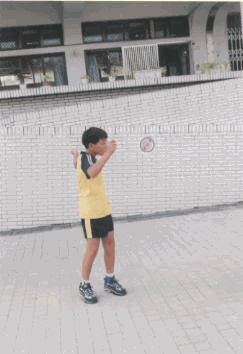 動作要領: 1.成開線,兩手伸直,左手在前,右手在後。 2.身體跳過鈴,鈴在身體左後方。 3.右手向上挑,鈴向上彈起。 4.以大鵬展翅方式接鈴。 |