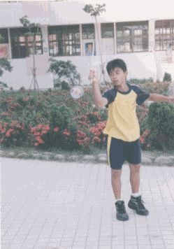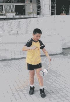 動作要領: 1.成開線,然後右臂彎曲。 2.左手向左邊抬高,左手輕挑鈴線,順時針方向將鈴從左邊推動 到右邊,使鈴拋落於右手外側的鈴線上。 3.再滑回左手側,繞著右手運轉。 4.鈴繞右手加速,左手調鈴,一直循環不已。 |